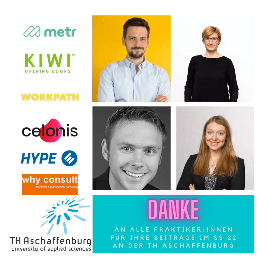This semester, numerous companies have once again been active in giving our TH Aschaffenburg students an insight into practical work. Many thanks to Denis Eser, Mats Wehn, Angela-Sophie Gebert, Johannes Müller, Meike Petersen for your interaction in real time and thanks also to Dr. Franka Birke and Tobias Flam for the interview recording, which was used again this semester.