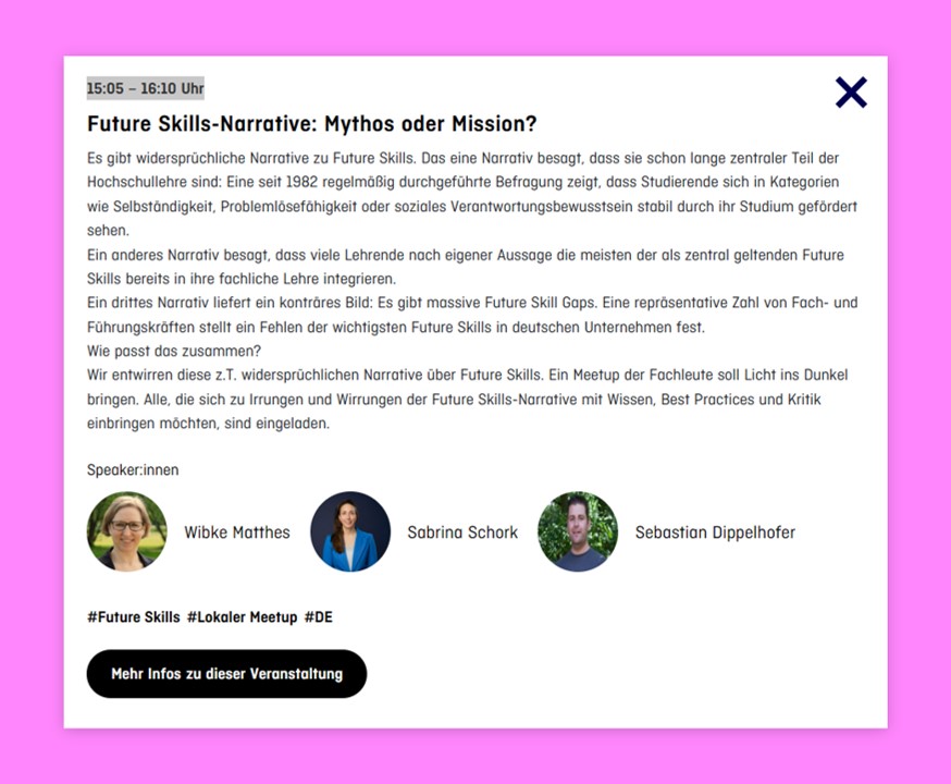 I am delighted to announce that I will facilitate a Meetup on 5 June 2024 with Wibke Matthes and Sebastian Dippelhofer on “Future Skills Narratives: Myth or Mission?”. If you want to be there, our workshop will take place from 15:05 to 16:10 at the University Future Festival @Festsaal Kreuzberg, Am Flutgraben 2, 12435 Berlin. I’m happy to connect! #FutureSkills #Education #Collaboration